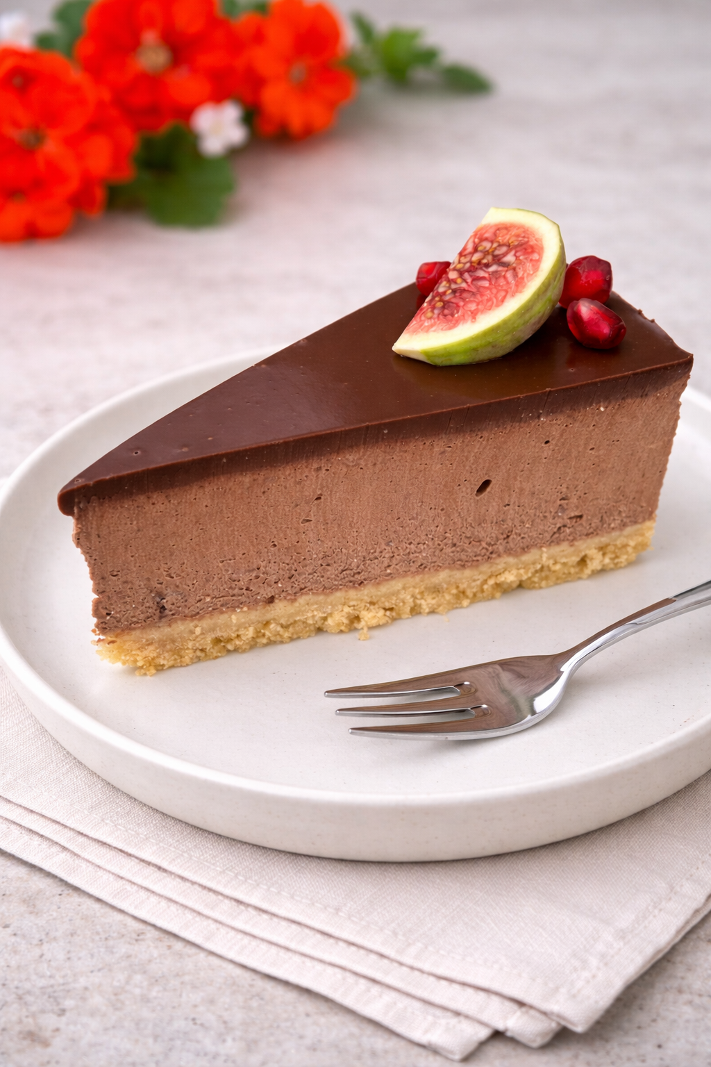 Sušenkový korpus zalitý krémem z tvarohu a smetany.