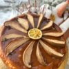 Jemná hrušková náplň z mascarpone, kysané smetany s hřebíčkem a badyánem pečené na máslových sušenkách, navrch zalité karamelem, zdobeno pečenými hruškami.