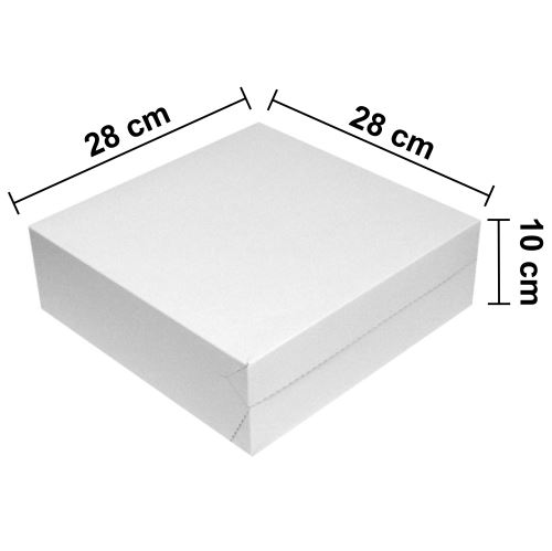 Bílá krabice o rozměrech 28 x 28 x 10 cm je vhodná pro všechny naše výrobky.