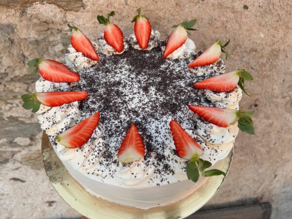 K dodání nejdříve tři dny od objednání. Pro odběr je možné zakoupit pouze celý dort (12 porcí).