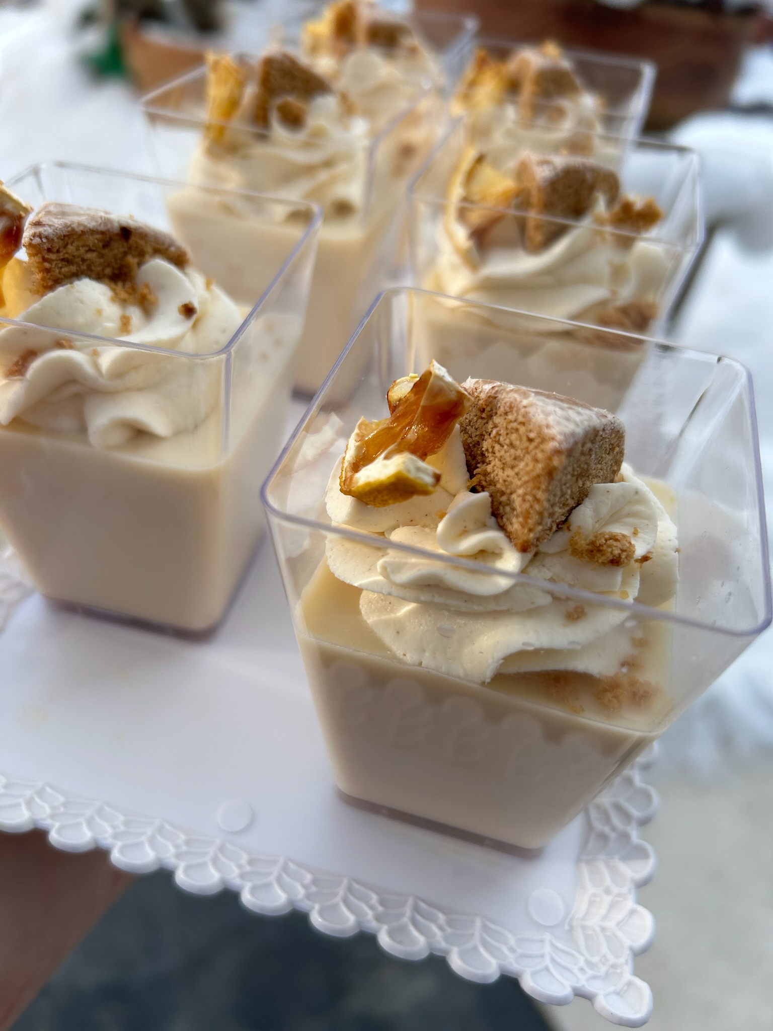 Smetana ochucena perníčkovým kořením, zdobené krémem z mascarpone a smetany s příchutí perníčku.