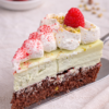 Pistáciový dort s malinami