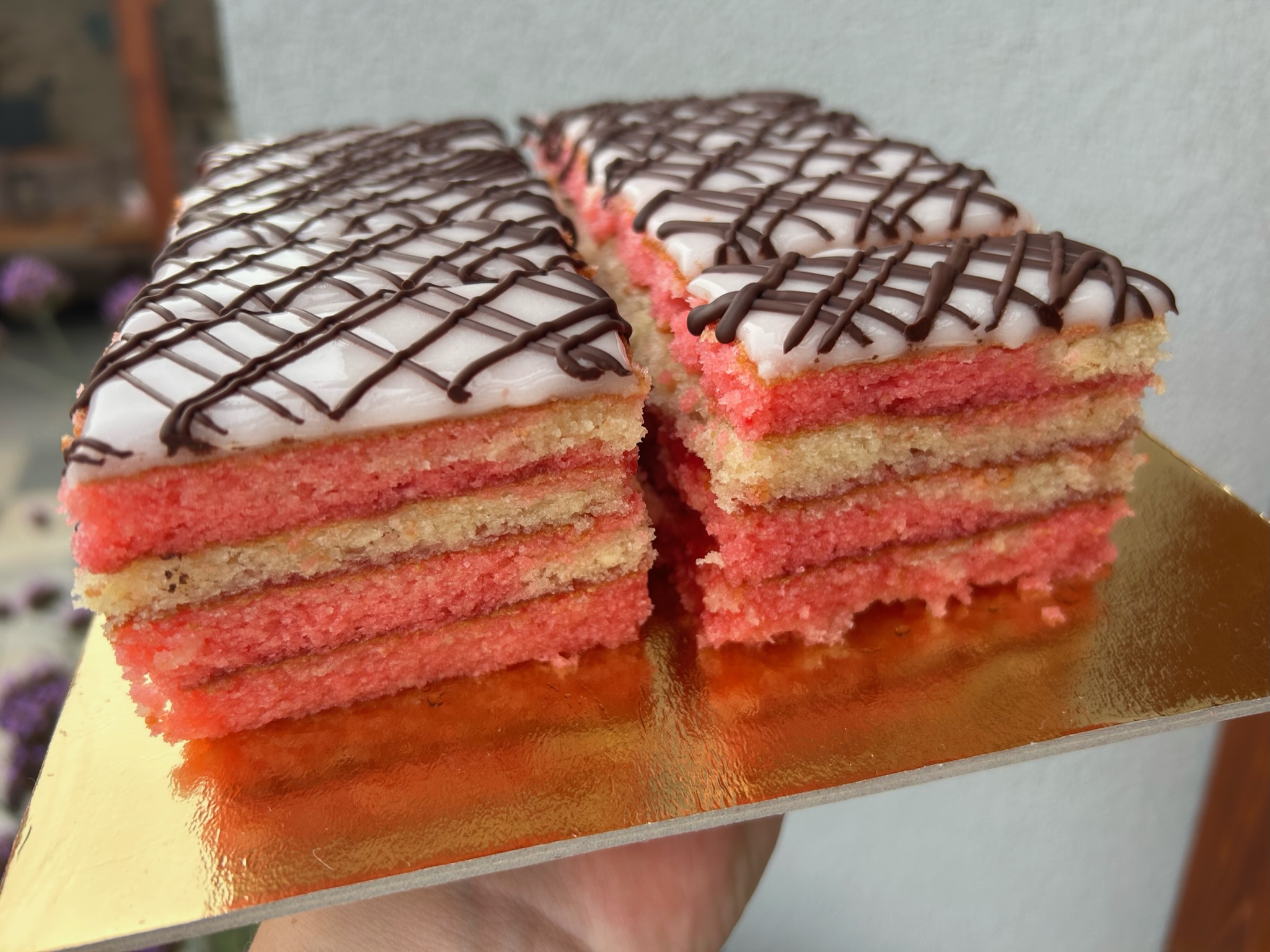 Punčový řez nabízíme i ve formě minizákusku, k dostání za 23 Kč. Pro odběr je možné zakoupit minimálně 15ks. Seznam všech minizákusků naleznete zde.