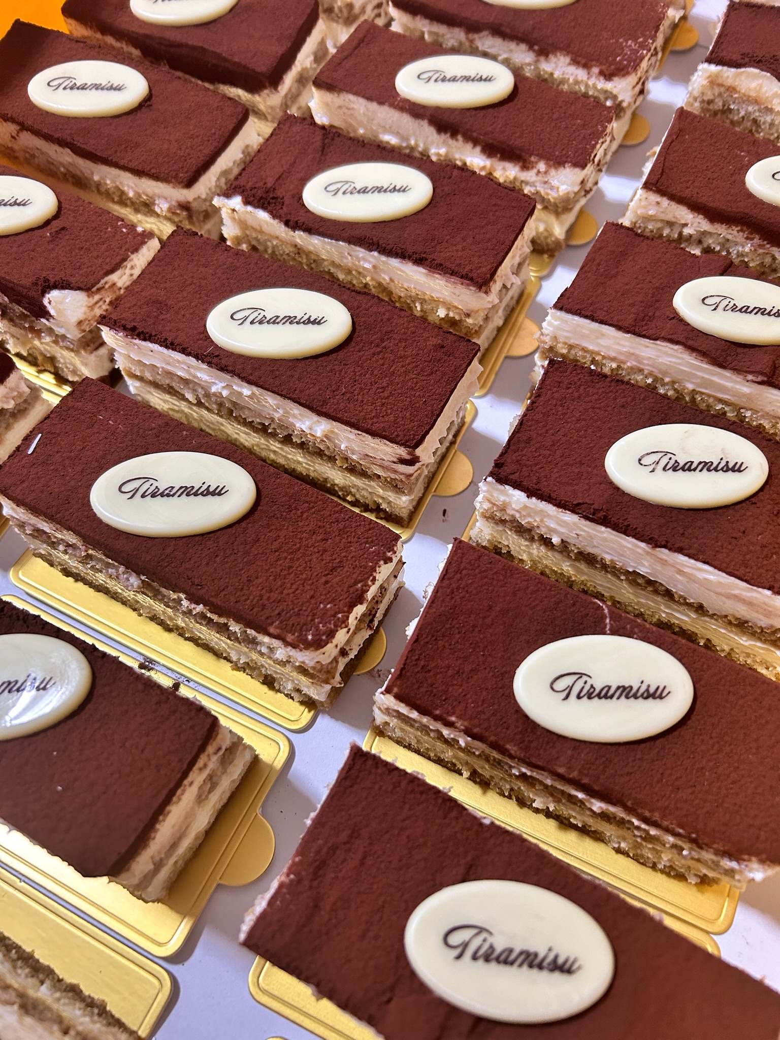 Lehký krém prokládaný piškoty namáčenými v kávě s likérem Amaretto, navrch zasypán kakaovým práškem.